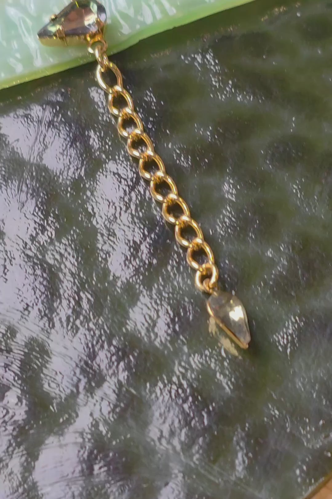 - EACH VINTAGE GLASS STONE IS SET IN GOLD PLATE.