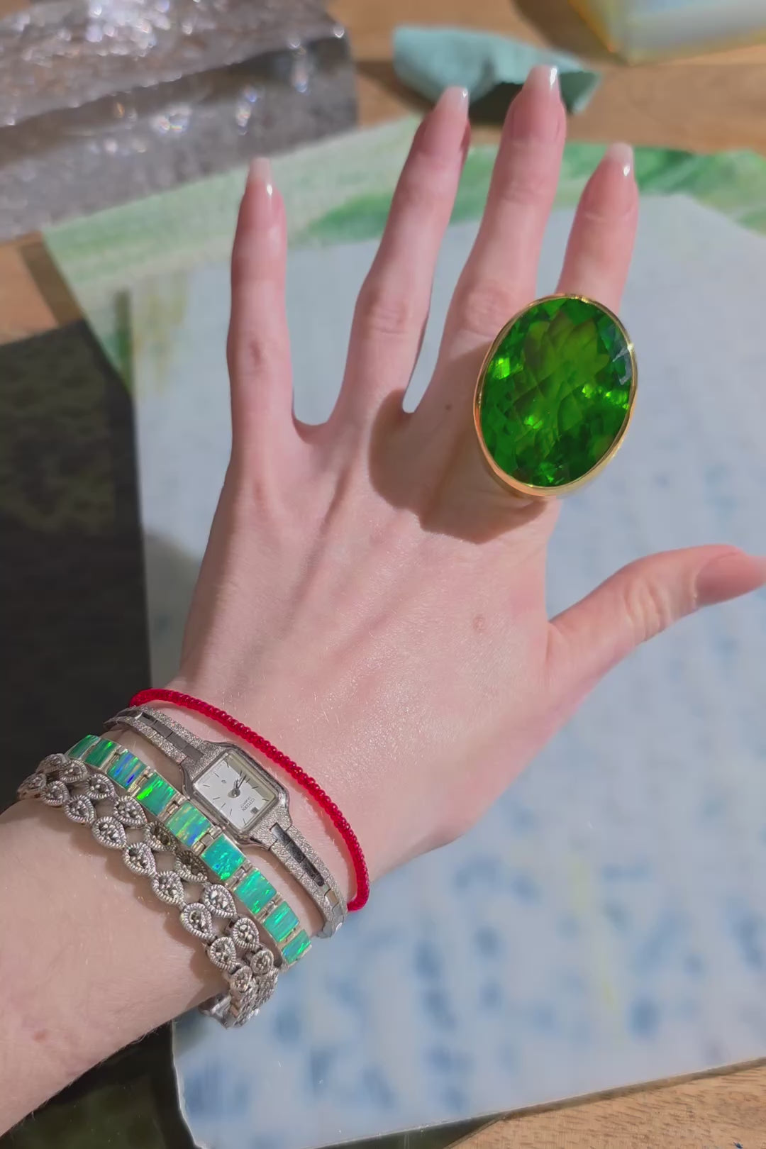- AN OVAL RING CARVED FROM GREEN GLASS.