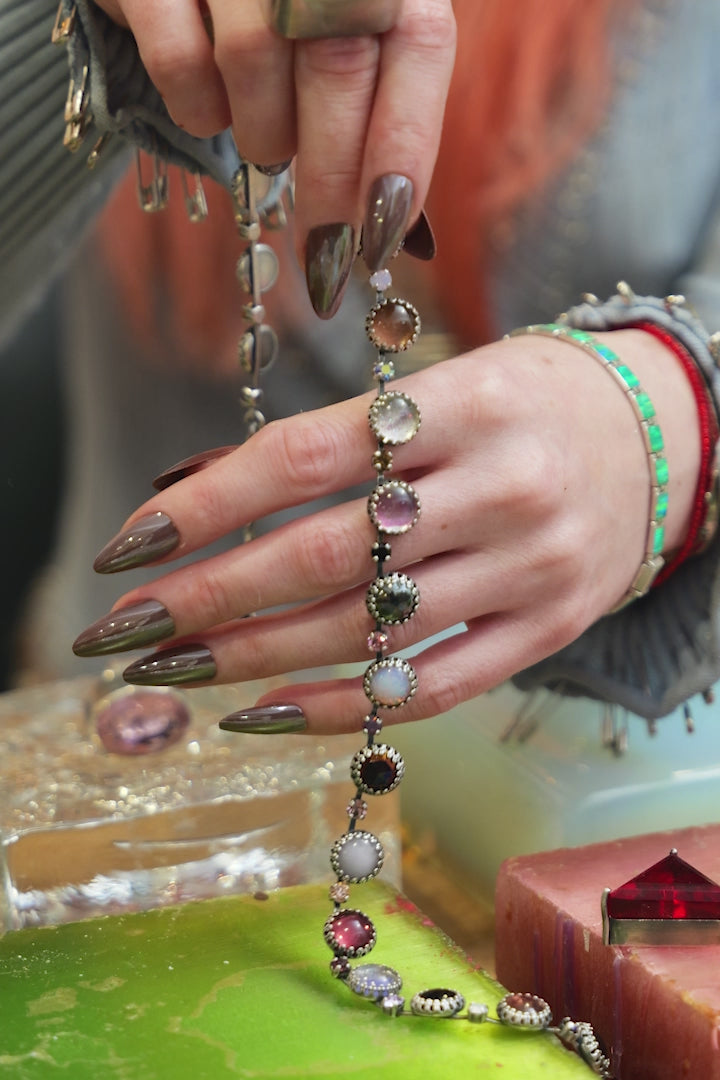 - A GLOWING GLASS CHOKER MADE OF MULTICOLOR ROUND STONES ALTERNATING BETWEEN TWINKLING CRYSTALS.