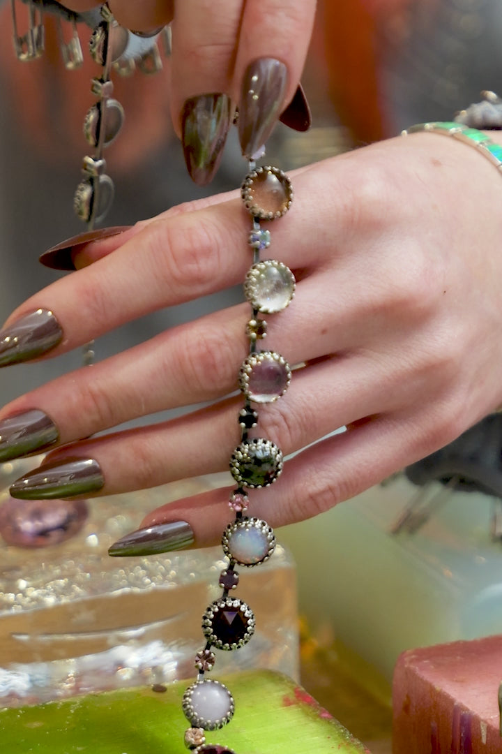 - EACH VINTAGE GLASS STONE IS SET IN A SILVER PLATE.